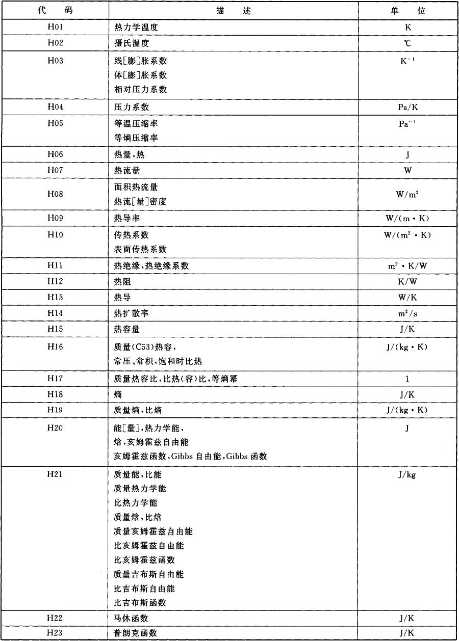 H熱學(xué)的量(ISO 31-4)