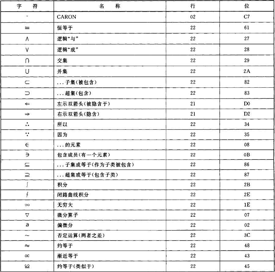 本附錄中的字符用于本部分。