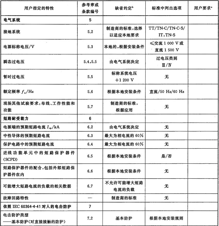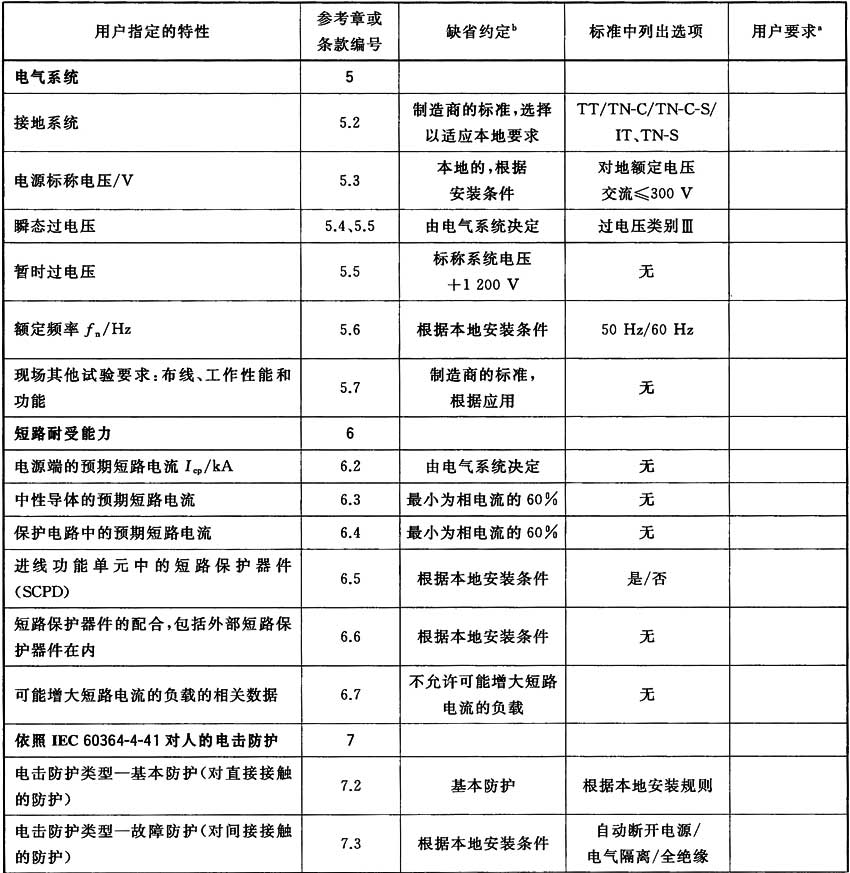 若用戶為特定應(yīng)用指定了布置、特性或功能,則由制造商對(duì)成套設(shè)備的設(shè)計(jì)負(fù)責(zé),并保證其符合GB 7251系列相關(guān)成套設(shè)備標(biāo)準(zhǔn)。根據(jù)用戶提供的信息,制造商將獲取其他成套設(shè)備特性以提供滿足用戶提出的應(yīng)用要求的成套設(shè)備。