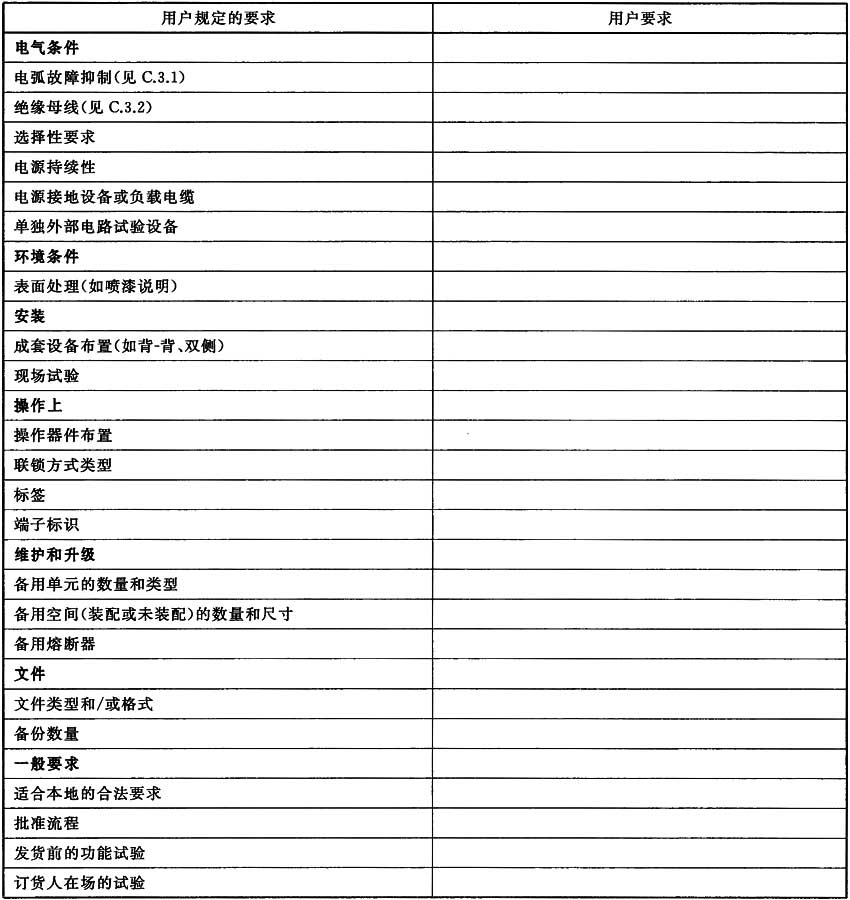 除了在C.1中列出的信息,用戶還可以有附加可選要求,這些要求在標(biāo)準(zhǔn)中未規(guī)定,但是滿足用戶喜好和/或應(yīng)用要求所必需的。這些也要成套設(shè)備制造商與用戶間達(dá)成協(xié)議。然而,如果用戶沒(méi)有特殊規(guī)定,制造商可以不用考慮。
