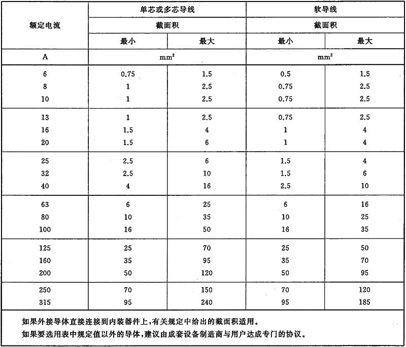 附錄A 適合連接外接導(dǎo)體端子的銅導(dǎo)線截面積