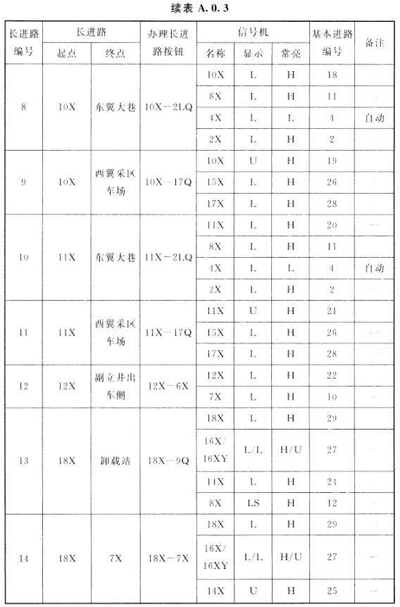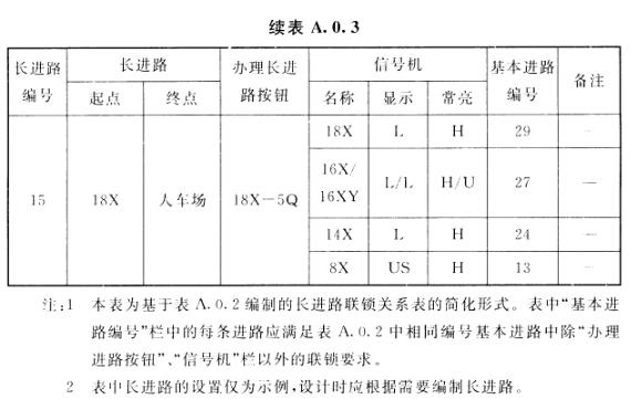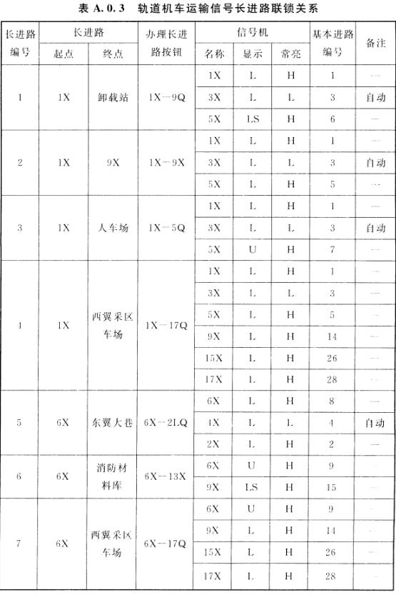 A.0.3軌道機車運輸信號長進路聯(lián)鎖關系應符合表A.0.3的規(guī)定。