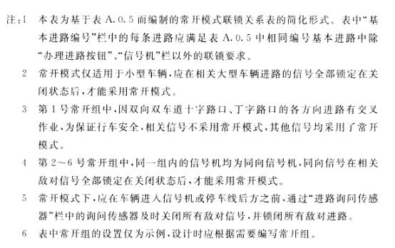 A.0.7無軌膠輪車運輸信號常開模式聯(lián)鎖關系應符合表A.0.7的規(guī)定。