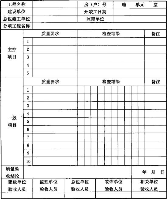 表D 住宅室內(nèi)裝飾裝修分戶工程質(zhì)量驗(yàn)收記錄
