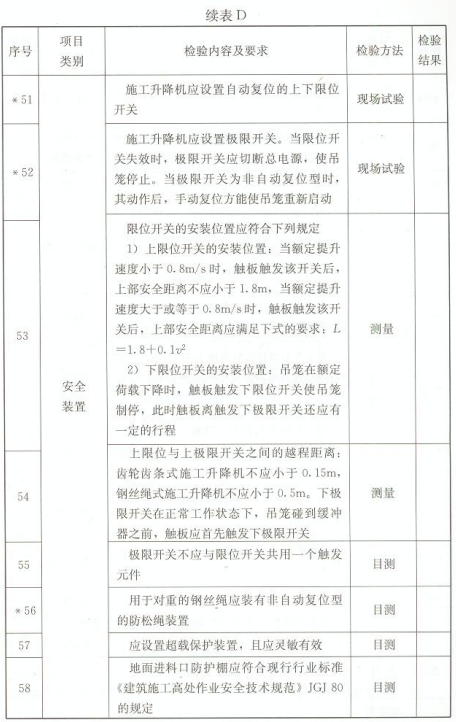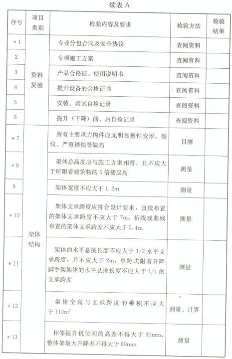 1) 附著式升降腳手架、高處作業(yè)吊籃、龍門架及井架物料提升機不得超過3項;(免費下載)JGJ 305-2013 建筑施工升降設備設施檢驗標準