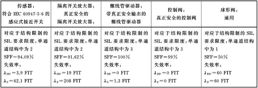 表A.1中給出了本控制系統(tǒng)示例中需對每個元件考慮的可靠性和結構數(shù)據(jù)。