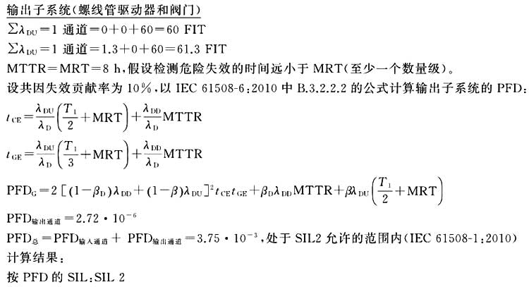 按照IEC 61508-2:2010中表2的要求,除球形閥(其結構僅達到SIL1,SFF低于90%)以外的所有元件都可用于最高至SIL 2的安全相關功能。因此,輸出通道(螺線管驅動器、控制閥和球形閥)宜具有如圖A.2所示的冗余架構。