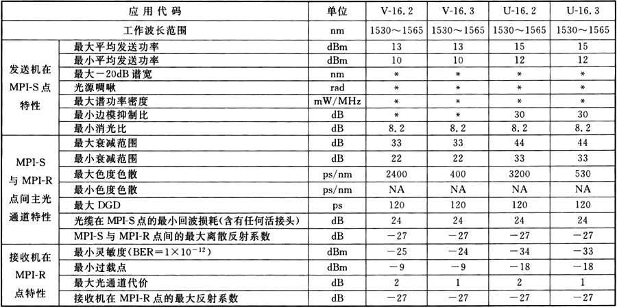 A.0.5 STM-16光接口參數(shù)(V型和U型)應符合表A.0.5的規(guī)定。