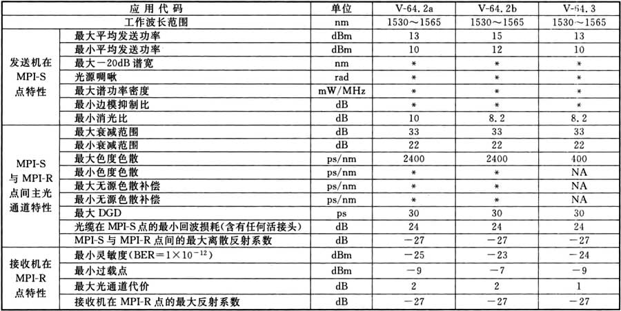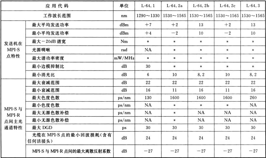 A.0.9 STM-64光接口參數(shù)(L型)應符合表A.0.9的規(guī)定。