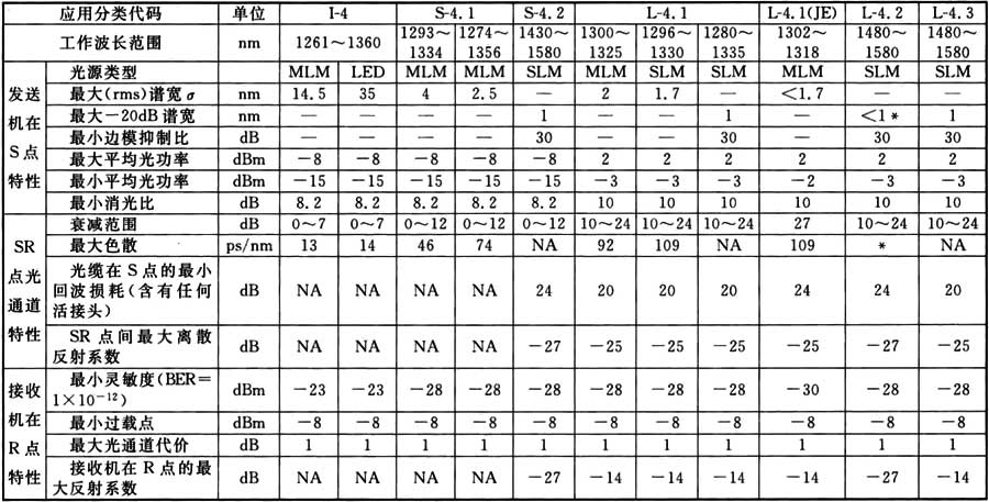 表A.0.2 STM-4光接口參數(shù)(I型、S型和L型)規(guī)范