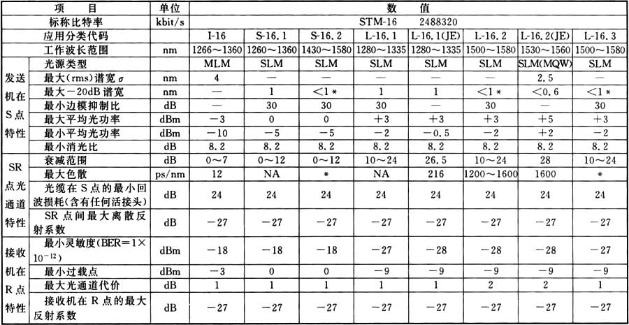 表A.0.4 STM-16光接口參數(shù)(I型、S型和L型)規(guī)范