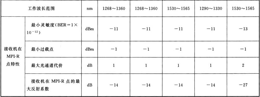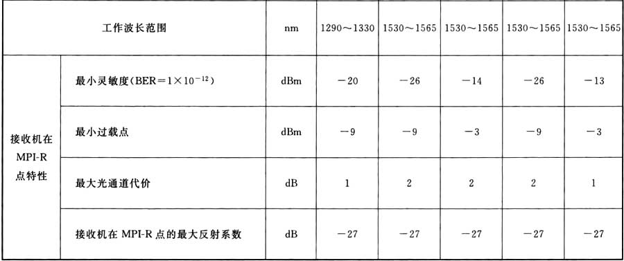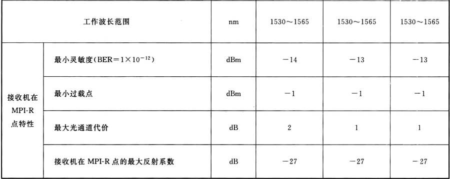 表A.0.1 STM-1光接口參數(shù)規(guī)范