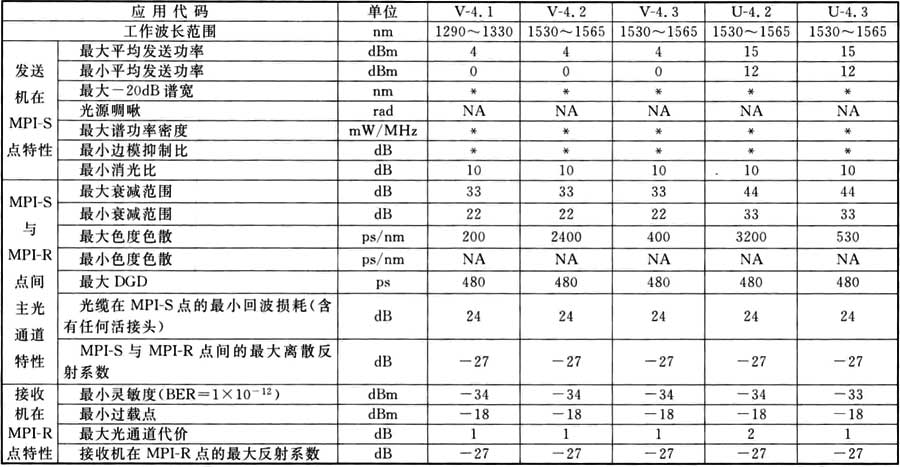 表A.0.3 STM-4光接口參數(shù)(V型和U型)規(guī)范