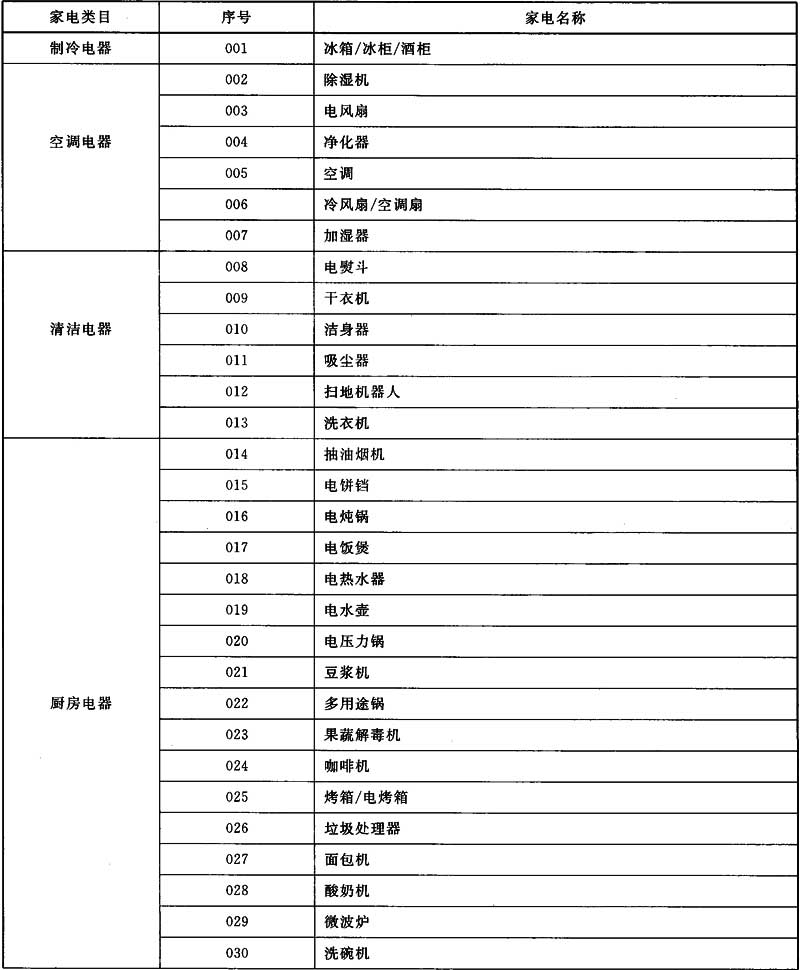 附錄A 家用電器產(chǎn)品分類