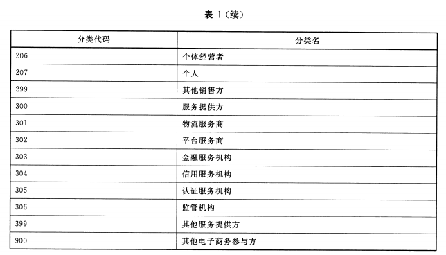電子商務(wù)參與方分類代碼見表1。