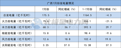整理了華南4個省區(qū)(廣東、廣西、海南、福建)7月份的發(fā)電量情況,包括火電、水電、核電、風電、太陽能發(fā)電。
