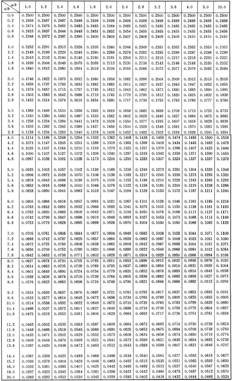 表C.0.1-1 矩形面積上均布荷載作用下角點附加應力系數(shù)α