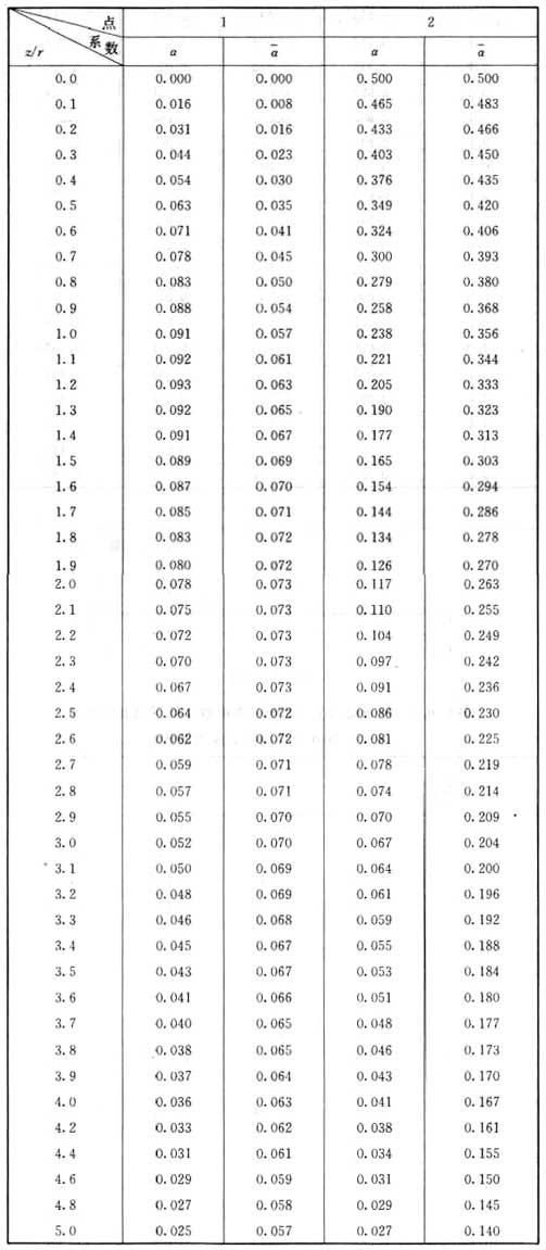 表C.0.3 圓形面積上均布荷載作用下中點的附加應力系數(shù)α與平均附加應力系數(shù)α