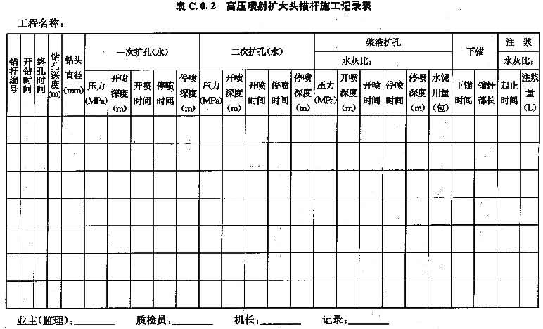 C.0.2 高壓噴射擴(kuò)大頭錨桿施工記錄表格宜符合表C.0.2的規(guī)定。