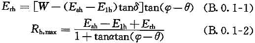 錨桿最大拉力的水平分為Rh,max也可根據(jù)圖B.0.1(c)所示的力平衡關(guān)系按下列公式求得(砂性土層時(shí),c=0):