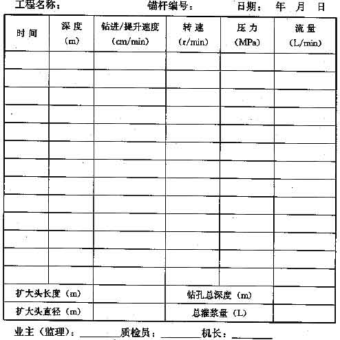 附錄C 高壓噴射擴(kuò)大頭錨桿施工記錄表