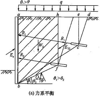 E1h——假設(shè)的錨固壁面上所受的主動(dòng)土壓力的水平分力;