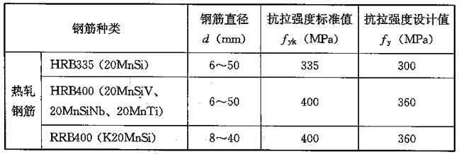 fyk、fy——預(yù)應(yīng)力混凝土用螺紋鋼筋和普通熱軋鋼筋的抗拉強(qiáng)度標(biāo)準(zhǔn)值、設(shè)計(jì)值;