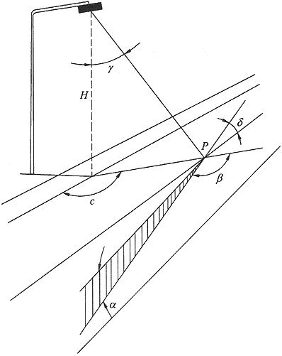 圖A.0.1 確定路面亮度系數(shù)的角度
