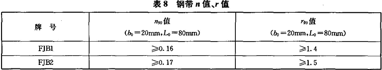 根據(jù)需方要求,經(jīng)供需雙方協(xié)商,并在合同中注明,供方可提供制作沖壓板鋼帶的n值、r值實際檢驗結(jié)果,其數(shù)值可參考表8,但不作為判定合格的依據(jù)。