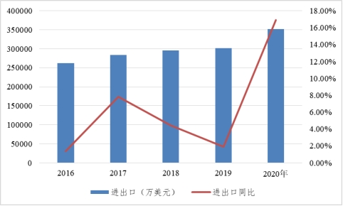 受土地資源短缺、勞動力成本上升、城市承載能力有限、國際貿(mào)易摩擦等因素的影響,對外經(jīng)濟發(fā)展面臨嚴峻挑戰(zhàn),宜春市堅持做優(yōu)增量、調(diào)整存量,全力穩(wěn)定外貿(mào)外資規(guī)模。2016-2020年,全市進出口貿(mào)易總額分別占全省進出口總額的比重依次為6.56%、6.39%、6.12%、5.93%和6.09%,占比總體保持平穩(wěn),總量規(guī)模則穩(wěn)步上升,年均增長9.13%。特別是2020年,宜春市在極為不利的外部環(huán)境下,成功抵御住了中美貿(mào)易摩擦與新冠肺炎疫情帶來的雙重沖擊,進出口總額較2019年同期增長17.2%,實現(xiàn)外貿(mào)規(guī)模穩(wěn)中有進,外貿(mào)體量不斷壯大。