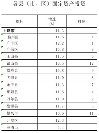 (江西省)上饒市2021年上半年各縣(市、區(qū))固定資產(chǎn)投資