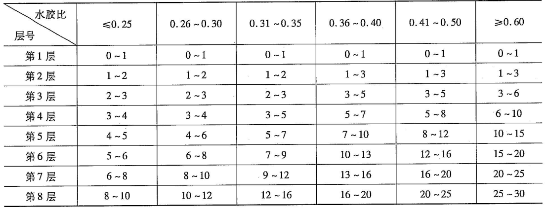 (14)摻加粉煤灰、粒化高爐礦渣粉等活性摻合料試件,混凝土分層取樣厚度按降低一檔水膠比選用;