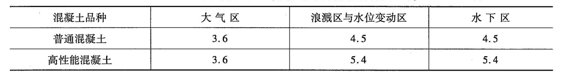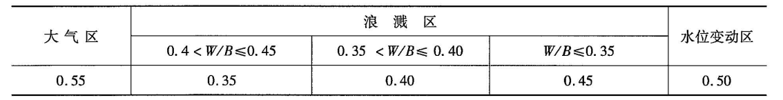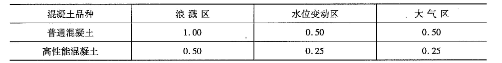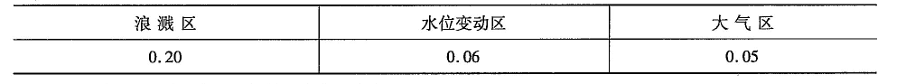 注:浪濺區(qū)的鋼筋混凝土板鋼筋平均腐蝕速度取0.05mm/a。