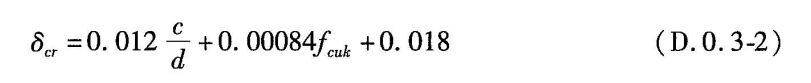 D.0.3.2 混凝土保護(hù)層開裂時(shí)鋼筋臨界銹蝕深度可按下式計(jì)算: