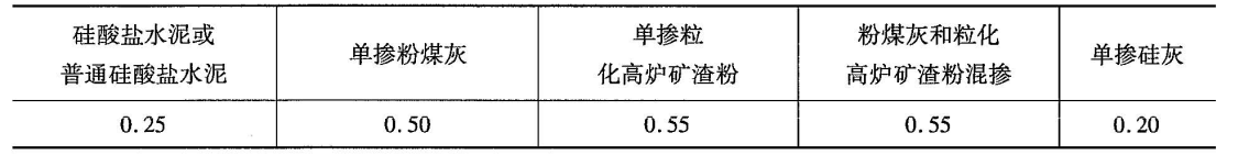 氯離子擴(kuò)散系數(shù)的衰減系數(shù) 表D.0.2-1
