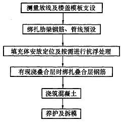 E.0.3 現(xiàn)澆密肋復合樓蓋的施工流程可按圖E.0.3所示順序進行,綁扎肋梁鋼筋與填充體安放定位的順序可視具體情況調整。