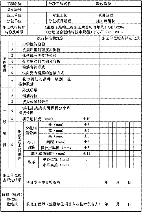 D.0.2 密肋復合墻板鋼筋檢驗批質量驗收可按表D.0.2記錄。