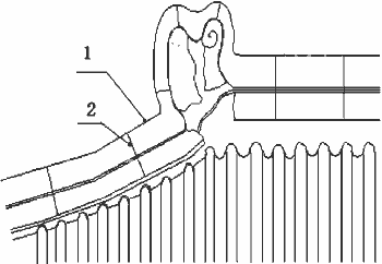 e) 接閃帶(網(wǎng))緊貼文物建筑屋脊敷設(shè)示意圖