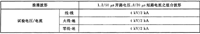 燈具應(yīng)能承受表1中浪涌-交流電源輸入端口的電壓沖擊,試驗(yàn)后燈具應(yīng)能正常工作。
