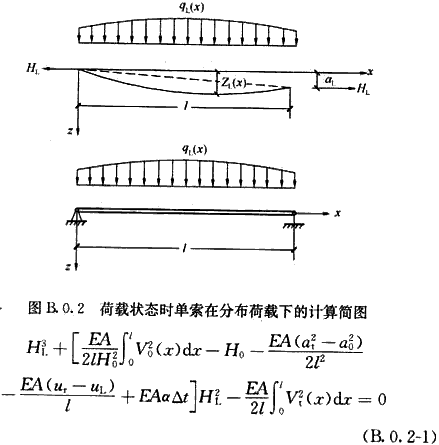 B. 0.2 當(dāng)分布荷載由初始q0(x)增加到qL(x)時(shí),單索的拉力水平分量可按下式計(jì)算(圖B. 0.2)。