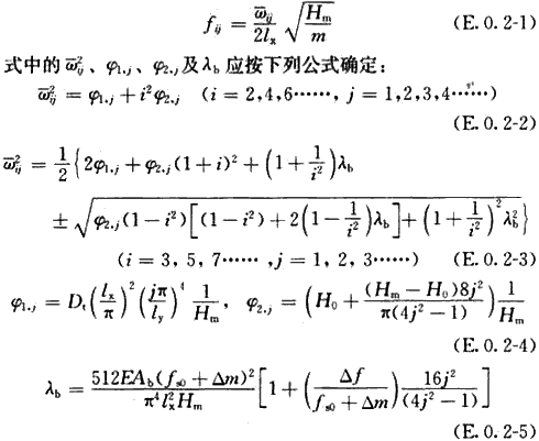 E.0.2 橫向加勁索系的自振頻率和振型可近似按下式計(jì)算: