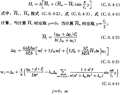 C.0.5 支座下壓后及均布荷載下索拉力的水平分量Hj應(yīng)按本規(guī)程式(C. 0.4-1)、式(C.0.4-2)、式(C. 0. 4-3)、式(C. 0.4-4)計(jì)算,其中qd0應(yīng)按qd取用。