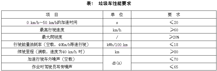 4.1.10 垃圾車性能應(yīng)符合表1的規(guī)定。