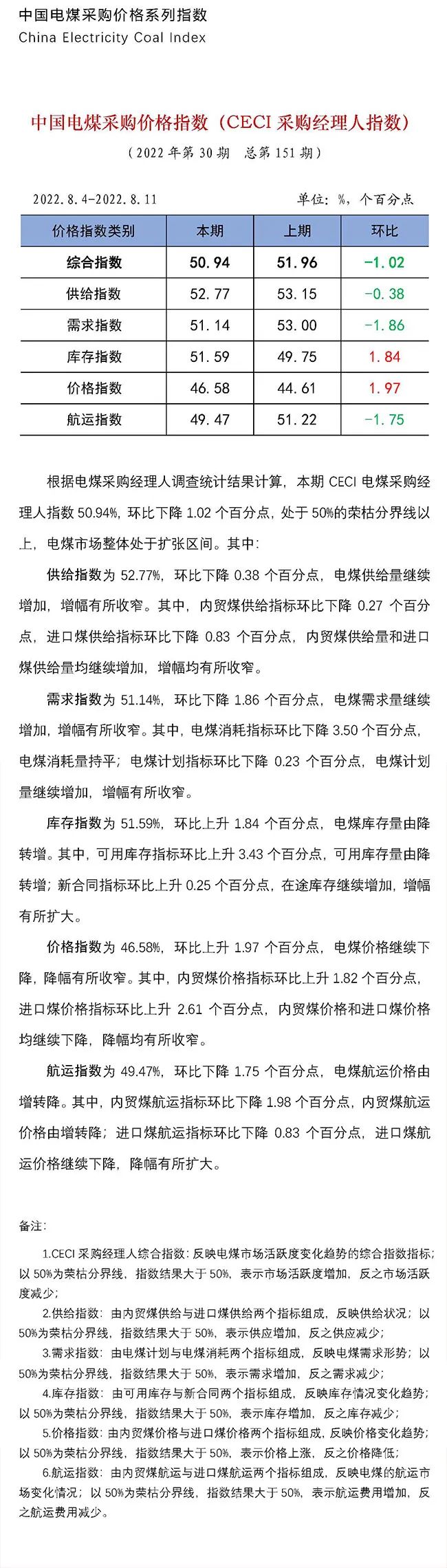 2022年|中國(guó)電煤采購(gòu)價(jià)格CECI系列指數(shù)(2022年8月4日-8月11日)