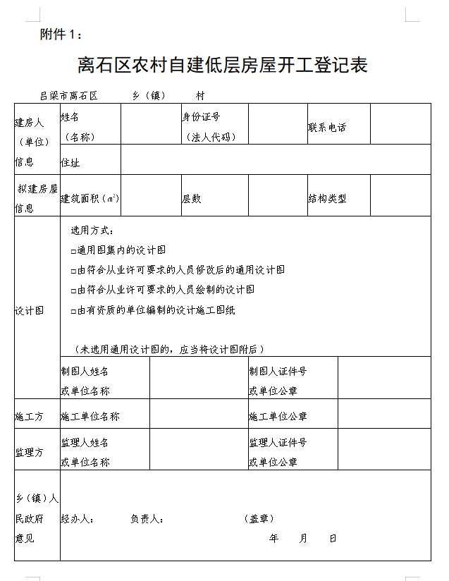附件:1.離石區(qū)農(nóng)村自建低層房屋開工登記表