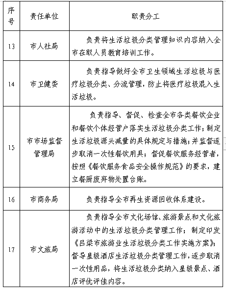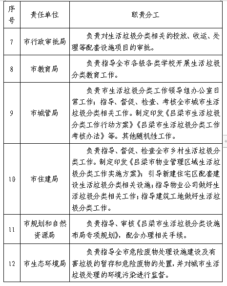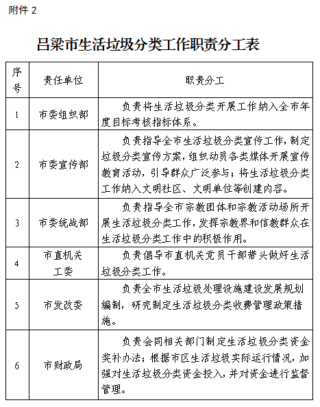 2.呂梁市生活垃圾分類工作職責分工表