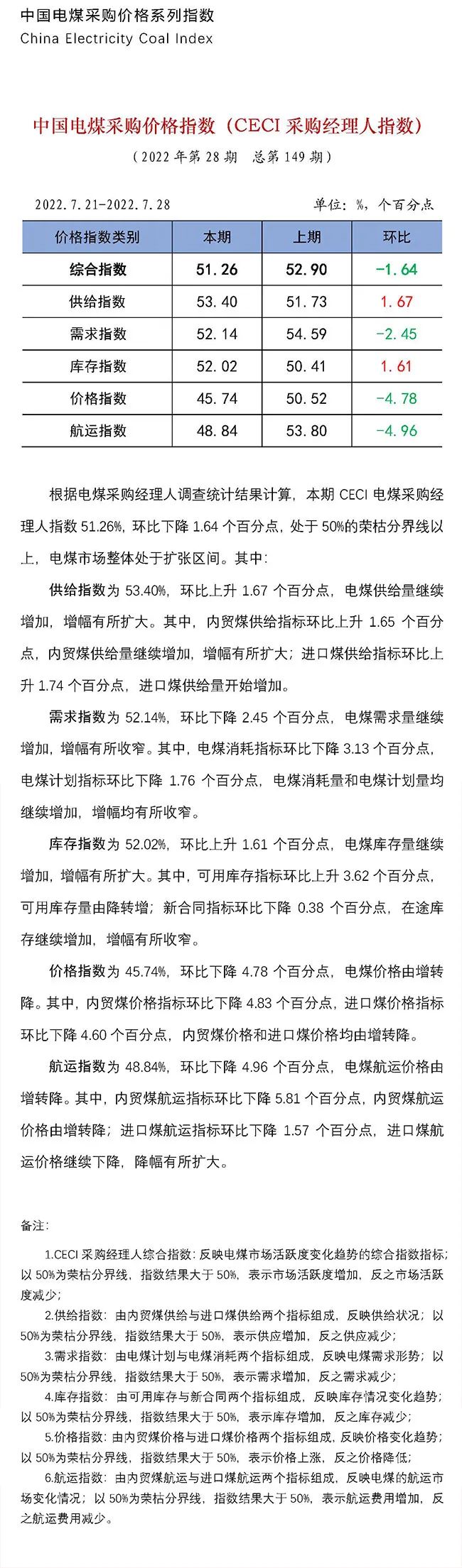 2022年|中國電煤采購價格CECI系列指數(shù)(2022年7月21日-7月28日)
