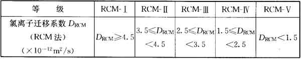 表3.0.2-1混凝土抗氯離子滲透性能的等級(jí)劃分(RCM法)