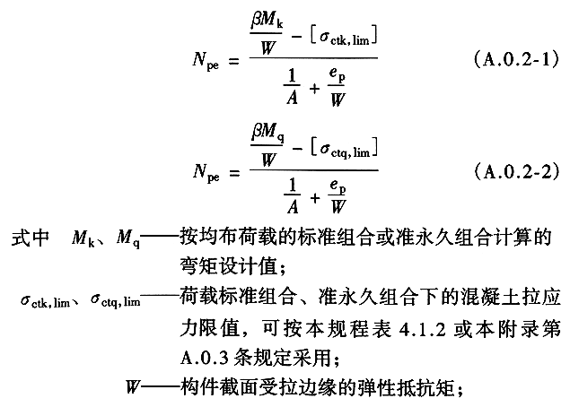 A.0.2 根據(jù)結(jié)構(gòu)類型和正截面裂縫控制驗算要求,無粘結(jié)預(yù)應(yīng)力筋有效預(yù)加力值Npe,可按下列兩個公式進(jìn)行估算,并取其計算結(jié)果的較大值: