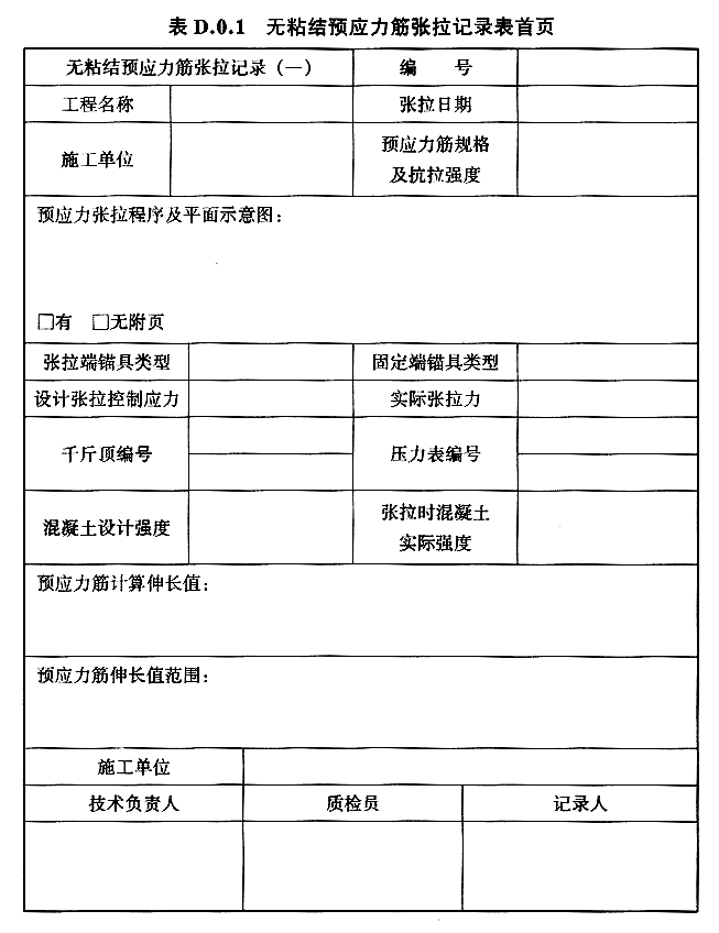 附錄D 無粘結(jié)預(yù)應(yīng)力筋張拉記錄表